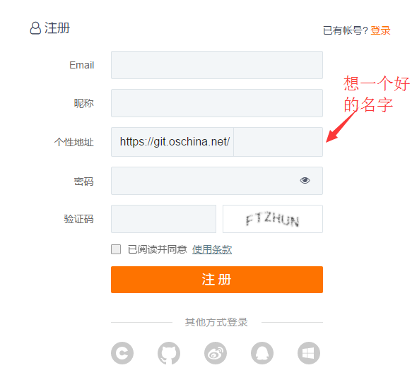 - 首先我们要注册一个账号,官网http://git.oschina.net/