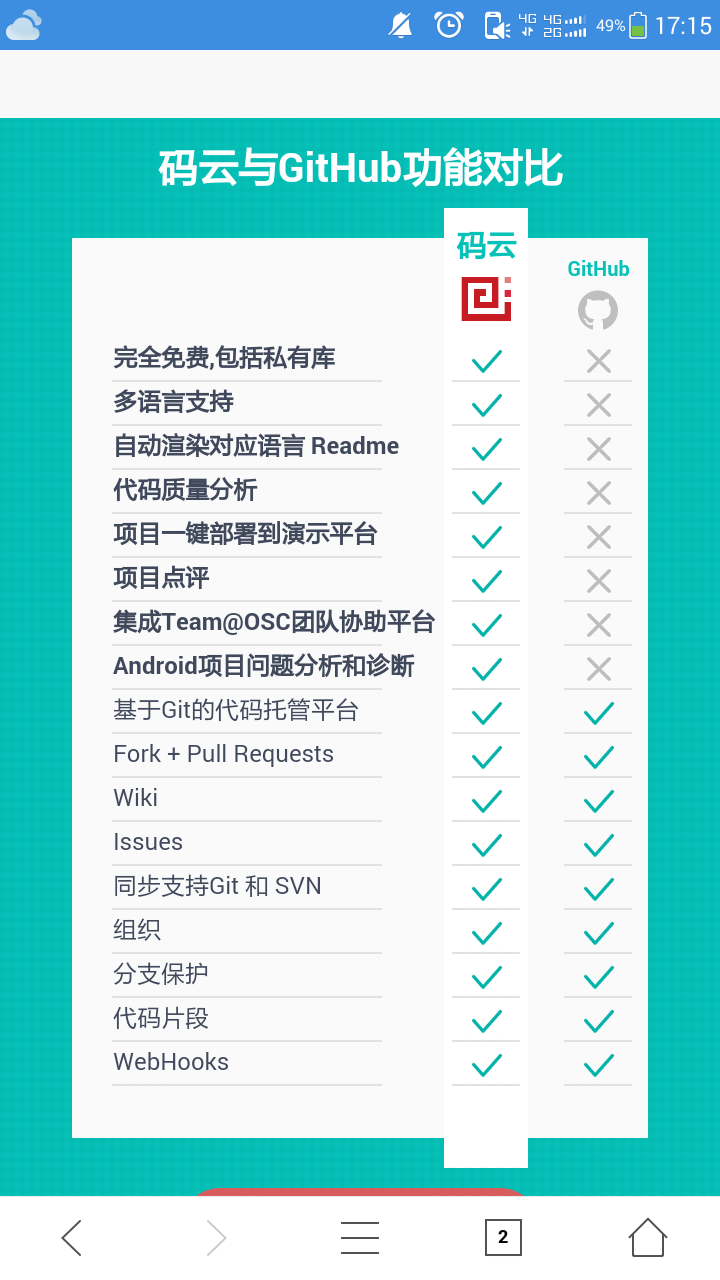 - 不管项目私有还是公开,码云都是免费的,而GitHub在私有是收费的。