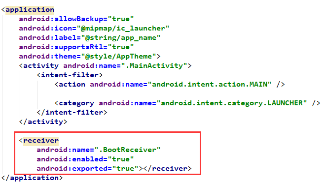 android:name=".BootReceiver"