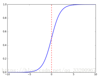 因为是使用numpy实现的sigmoid函数的,所以这个sigmoid函数可以计算实数、矢量和矩阵,如下面的就是当x是实数的时候: