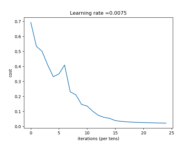 def L_layer_model(X, Y, layers_dims, learning_rate=0.0075, num_iterations=3000, print_cost=False):