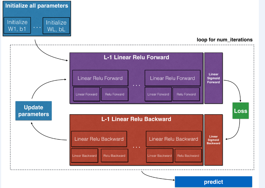 # 正向传播: [LINEAR -> RELU]*(L-1) -> LINEAR -> SIGMOID.