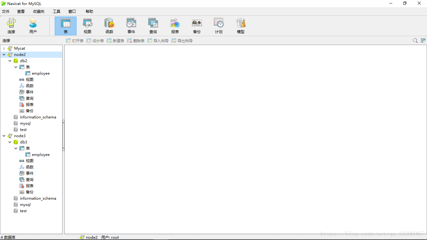 我们也可以使用NavicatForMySQL连接MySQL数据库,以下就是我们连接node2和node3的MySQL数据库。