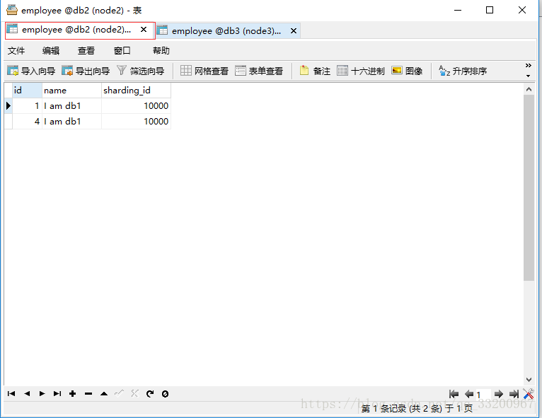 insert into employee(id,name,sharding_id) values(2, 'I am db2',10010);