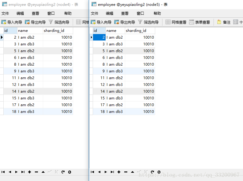 insert into employee(id,name,sharding_id) values(17, 'I am db2',10010);